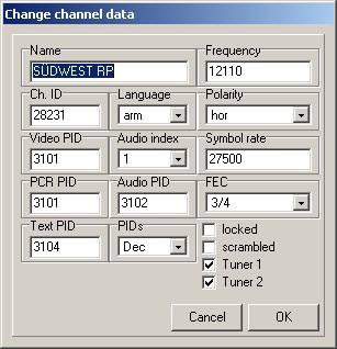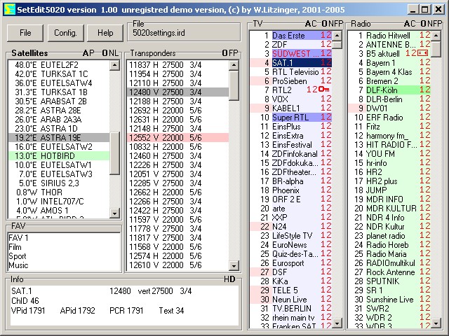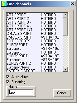 The main window, you see all satellites, transponders, favourites, and of course the channels.