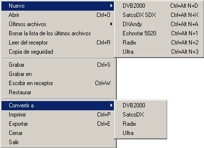 ? y convertir en otros formatos de configuracin, o importar canales directamente de otros formatos a su configuracin SetEdit5020. Usted puede abrir varios formatos de configuracin al mismo tiempo.