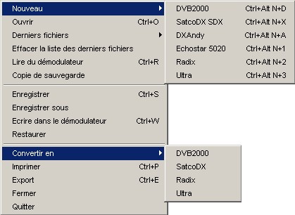 ...et convertir de ou en autres formats de settings ou importer des canaux d'autres formats de settings dans vos settings de SetEdit5020. Vous pouvez ouvrir plusieurs formats de settings en mme temps.