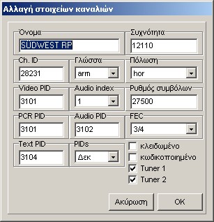 ... και φυσικά τις ρυθμίσεις των καναλιών.