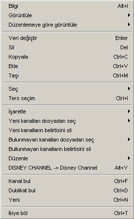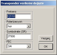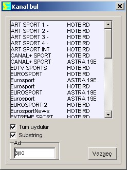 Ana pencere, burada tüm Uydular, Transponderler, Favoriler, görüyorsunuz ve tabiiki kanalları.