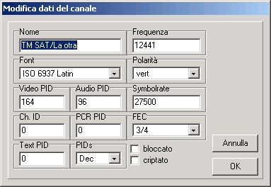 La finestra principale, vedi tutti i satellite, transponder, FAV, genres, e naturalmente i canali.