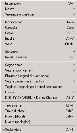 Menu principale della lista di canali.