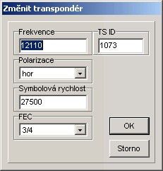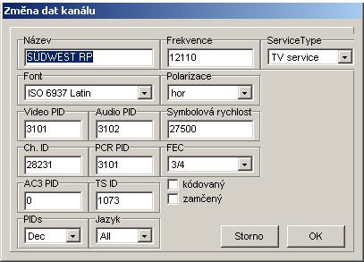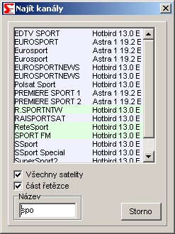 Hlavní okno, zde vidíte všechny satelity, transpondéry, FAV, a samozřejmě kanály