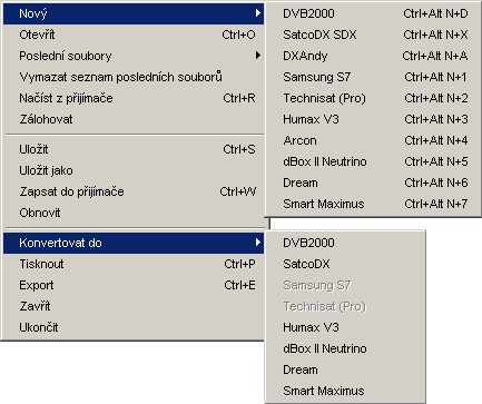 ...a konvertovat do nebo z ostatních formátŭ nastavení či importovat kanály přímo z ostatních formátŭ nastavení do vašeho SetEditArcon nastavení. Mŭžete otevřít několik nastavení najednou.
