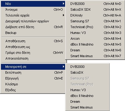 ...μετατροπή από και σε άλλες μορφές ρυθμίσεων (settings formats) ή απευθείας εισαγωγή καναλιών άλλων μορφών στις δικές σας ρυθμίσεις SetEditArcon. Μπορείτε να επεξεργάζεστε ταυτόχρονα περισσότερες μορφές ρυθμίσεων.