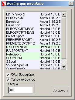 Το κυρίως παράθυρο, εδώ βρίσκονται: δορυφόροι, αναμεταδότες, αγαπημένα, και φυσικά τα κανάλια.