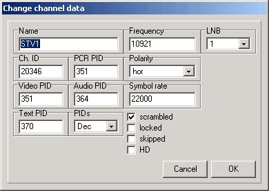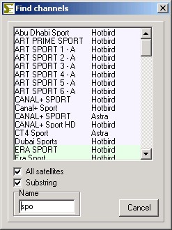 The main window, you see all satellites, transponders, favourites, and of course the channels.