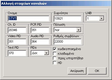 ... και φυσικά τις ρυθμίσεις των καναλιών.