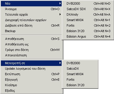 ...μετατροπή από και σε άλλες μορφές ρυθμίσεων (settings formats) ή απευθείας εισαγωγή καναλιών άλλων μορφών στις δικές σας ρυθμίσεις SetEditArgus. Μπορείτε να επεξεργάζεστε ταυτόχρονα περισσότερες μορφές ρυθμίσεων.