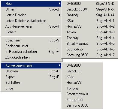 ...von und in andere Settingsformate konvertieren oder direkt Kanäle aus anderen Settingsformaten in Ihre SetEditArnion Settings importieren. Sie können mehrere Settingsformate gleichzeitig bearbeiten.