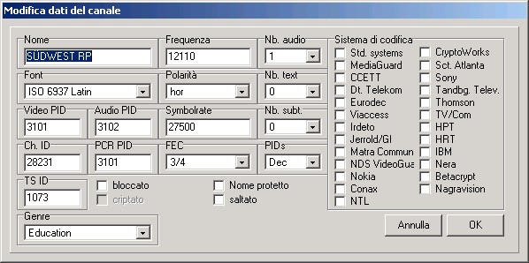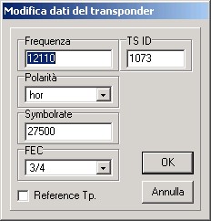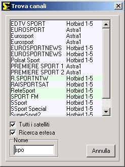 La finestra principale, vedi tutti i satellite, transponder, provider, FAV, e naturalmente i canali.
