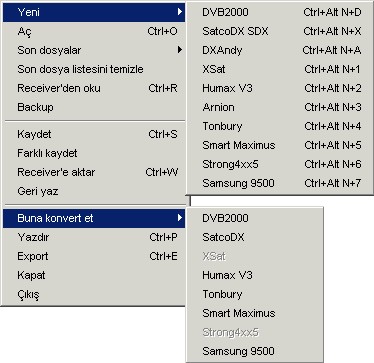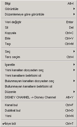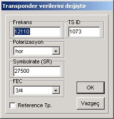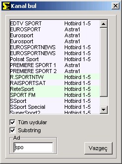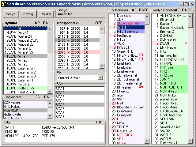 Ana pencere, burada tüm Uydular, Transponderler, Sağlayıcılar, Favoriler, görüyorsunuz ve tabiiki kanalları.