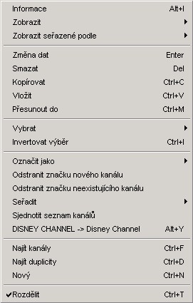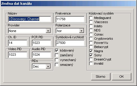 Hlavní okno, zde vidíte všechny satelity, transpondéry, provideri, FAV, a samozřejmě kanály