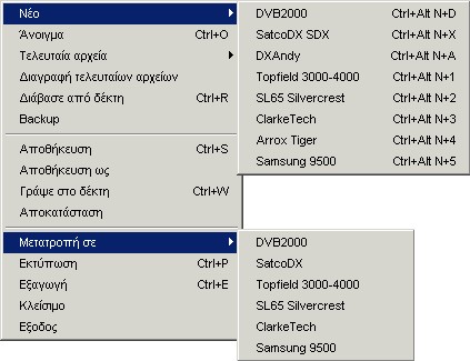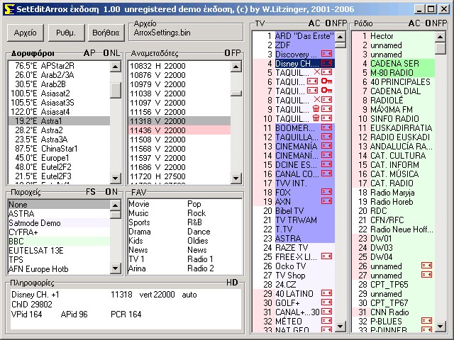 ...μετατροπή από και σε άλλες μορφές ρυθμίσεων (settings formats) ή απευθείας εισαγωγή καναλιών άλλων μορφών στις δικές σας ρυθμίσεις SetEditArrox. Μπορείτε να επεξεργάζεστε ταυτόχρονα περισσότερες μορφές ρυθμίσεων.