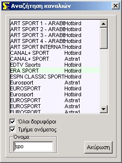 Το κυρίως παράθυρο, εδώ βρίσκονται: δορυφόροι, αναμεταδότες, παροχείς, αγαπημένα, και φυσικά τα κανάλια.