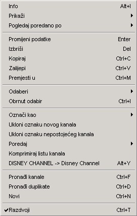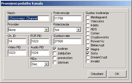 Glavni prozor, vidite sve satelite, transpondere, provajdere, favorite, i svakako kanale