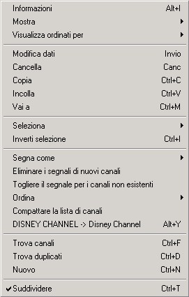 Menu principale della lista di canali.