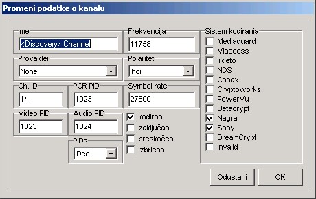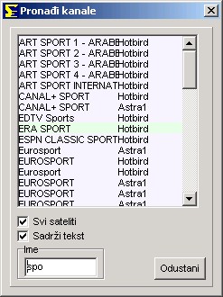 Glavni prozor, vidite sve satelite, transpondere, provajdere, favorite, i naravno kanale