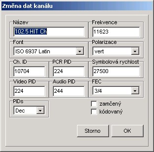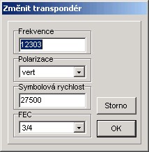 Hlavní okno, zde vidíte všechny satelity, transpondéry, a samozřejmě kanály