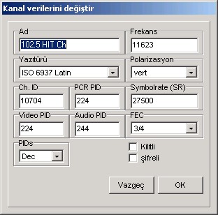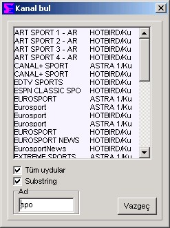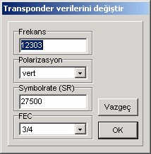Ana pencere, burada tüm Uydular, Transponderler, görüyorsunuz ve tabiiki kanalları.