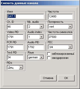 Здесь Вы можете выбрать язык меню, интерфейс, изображение PID, настройки листа каналов, задать допустимое отклонение частоты для импорта неизвестных форматов. Кроме того, вы можете здесь изменить шрифт и фон.