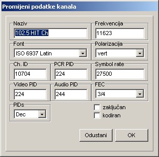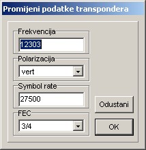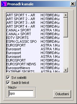 Glavni prozor, vidite sve satelite, transpondere, i svakako kanale