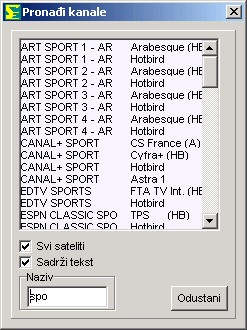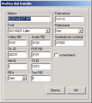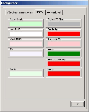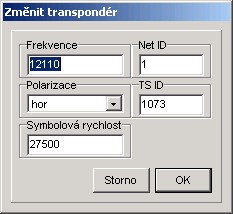 Hlavní okno, zde vidíte všechny satelity, transpondéry, a samozřejmě kanály