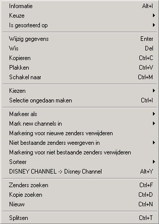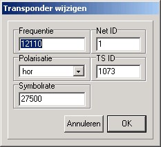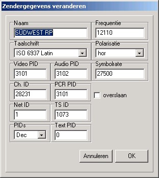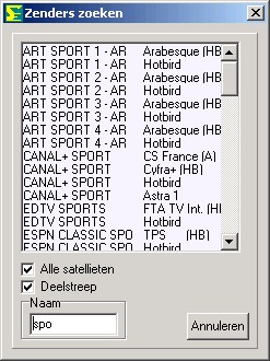 Het hoofdvenster, hier ziet u alle satellieten, transponders, en natuurlijk de zenders