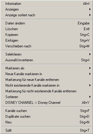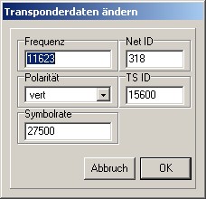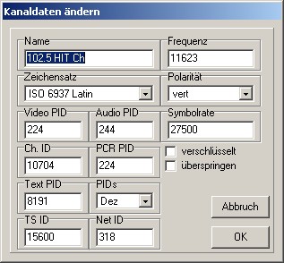 Das Hauptfenster, hier sehen Sie alle Satelliten, Transponder, Favoriten, und natürlich die Kanäle.