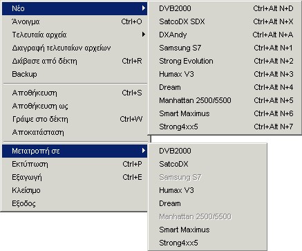 ...μετατροπή από και σε άλλες μορφές ρυθμίσεων (settings formats) ή απευθείας εισαγωγή καναλιών άλλων μορφών στις δικές σας ρυθμίσεις SetEditEvolution. Μπορείτε να επεξεργάζεστε ταυτόχρονα περισσότερες μορφές ρυθμίσεων.
