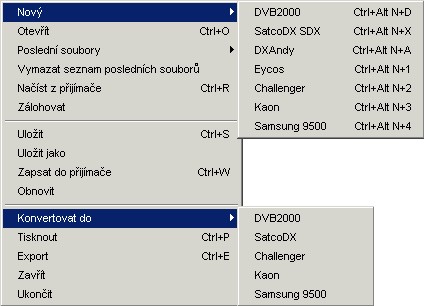 ...a konvertovat do nebo z ostatních formátŭ nastavení či importovat kanály přímo z ostatních formátŭ nastavení do vašeho SetEditEycos nastavení. Mŭžete otevřít několik nastavení najednou.