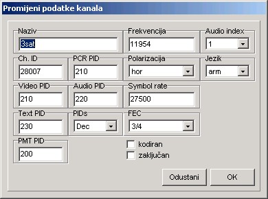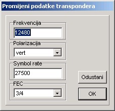 Glavni prozor, vidite sve satelite, transpondere, favorite, i svakako kanale