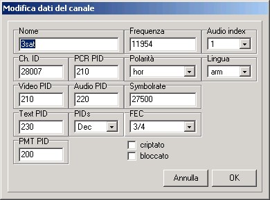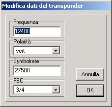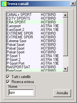 La finestra principale, vedi tutti i satellite, transponder, FAV, e naturalmente i canali.