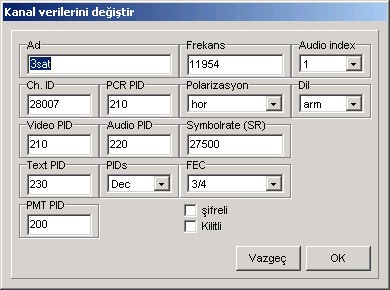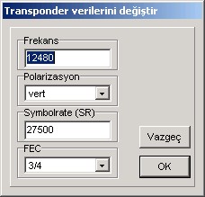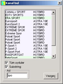 Ana pencere, burada tüm Uydular, Transponderler, Favoriler, görüyorsunuz ve tabiiki kanalları.