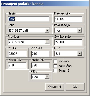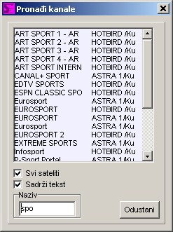Glavni prozor, vidite sve satelite, transpondere, provajdere, favorite, i svakako kanale
