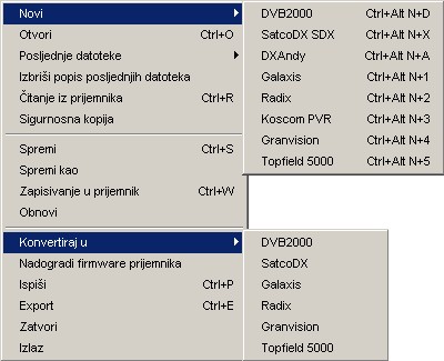 ...i konvertirate u ili iz drugih formata postavki ili importirate kanale izravno iz drugih formata postavki u vaše SetEditKoscomPVR postavke. Možete otvoriti nekoliko formata postavki najednom.