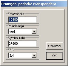 Možete promijeniti podatke za transponder