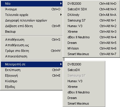 ...μετατροπή από και σε άλλες μορφές ρυθμίσεων (settings formats) ή απευθείας εισαγωγή καναλιών άλλων μορφών στις δικές σας ρυθμίσεις SetEditMVision. Μπορείτε να επεξεργάζεστε ταυτόχρονα περισσότερες μορφές ρυθμίσεων.