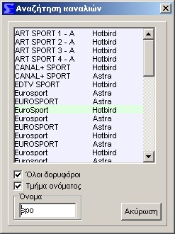 Το κυρίως παράθυρο, εδώ βρίσκονται: δορυφόροι, αναμεταδότες, αγαπημένα, και φυσικά τα κανάλια.