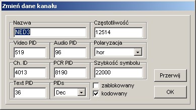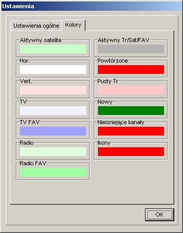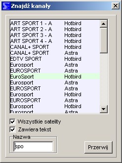 Okno główne, tutaj widzimy wszystkie satelity, transpondery, ulubione, i oczywiście kanały.