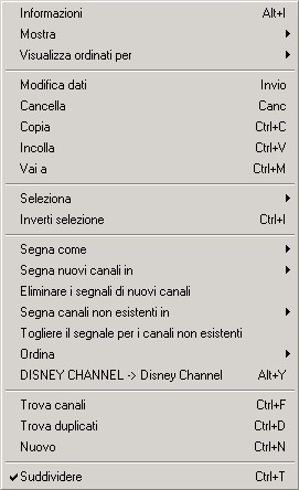 Menu principale della lista di canali.