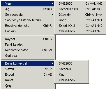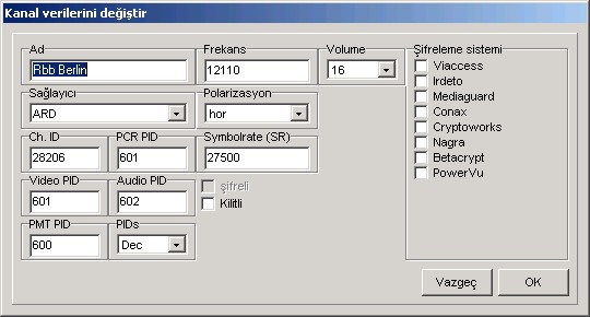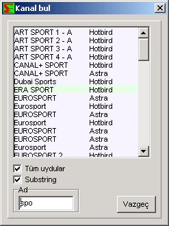 Ana pencere, burada tüm Uydular, Transponderler, Sağlayıcılar, Favoriler, görüyorsunuz ve tabiiki kanalları.