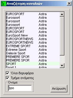 Το κυρίως παράθυρο, εδώ βρίσκονται: δορυφόροι, αναμεταδότες, παροχείς, αγαπημένα, και φυσικά τα κανάλια.