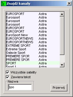 Okno główne, tutaj widzimy wszystkie satelity, transpondery, providery, ulubione, i oczywiście kanały.