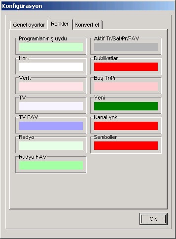 Burada menü dili, bağlantı yeri, PID'lerin ve kanal listesinin görüntüsü ayarlanır ve yabancı formatların importu için frekans toleransı verilir. Ayrıca burada SetEdit'in yazı ve ekran renklerini değiştirebilirsiniz.