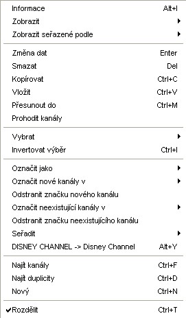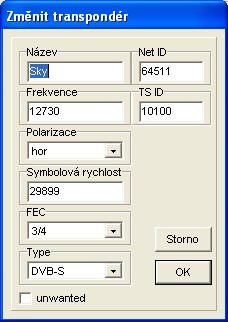 Hlavní okno, zde vidíte všechny satelity, transpondéry, FAV, a samozřejmě kanály