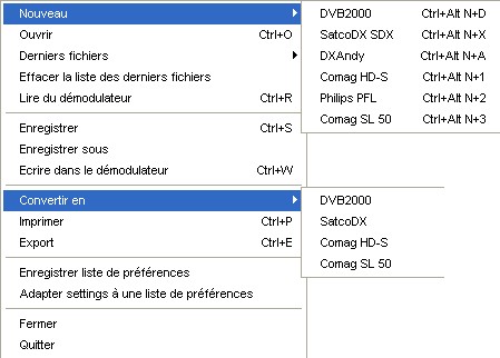 ...et convertir de ou en autres formats de settings ou importer des canaux d'autres formats de settings dans vos settings de SetEditPFL. Vous pouvez ouvrir plusieurs formats de settings en mme temps.