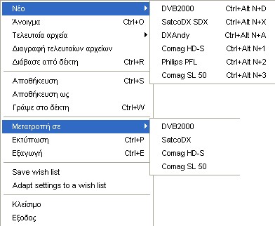 ...μετατροπή από και σε άλλες μορφές ρυθμίσεων (settings formats) ή απευθείας εισαγωγή καναλιών άλλων μορφών στις δικές σας ρυθμίσεις SetEditPFL. Μπορείτε να επεξεργάζεστε ταυτόχρονα περισσότερες μορφές ρυθμίσεων.