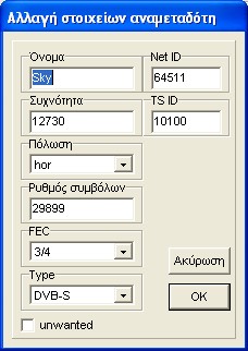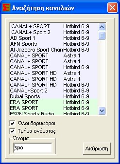 Το κυρίως παράθυρο, εδώ βρίσκονται: δορυφόροι, αναμεταδότες, αγαπημένα, και φυσικά τα κανάλια.